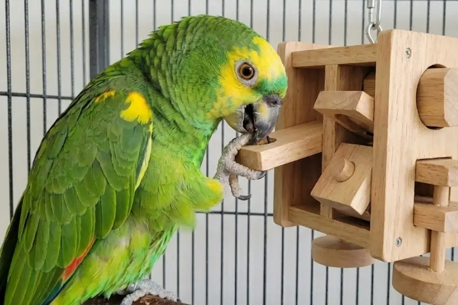 – Examples: Simple foraging toys involve wrapping treats in paper or hiding kibble inside a small, sealed cardboard box or a knotted rope. Complex toys include plastic or metal puzzles with levers and compartments that the bird must manipulate to access the reward.